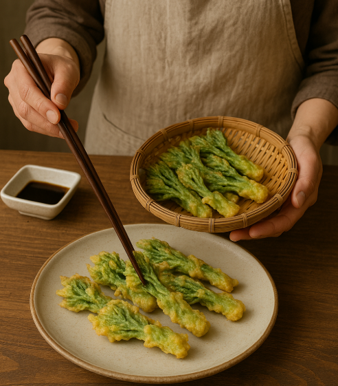 2️⃣ 두릅전 – λΆ€λ“œλŸ½κ³  κ³ μ†Œν•œ λ΄„μ²  별미