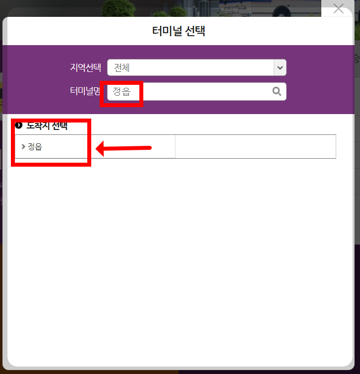 2. ‘μΆλ°μ§’μ μνλ ν°λ―Έλ, ‘λμ°©μ§’μ μ μ μ λ ₯ν΄μ£ΌμΈμ.
